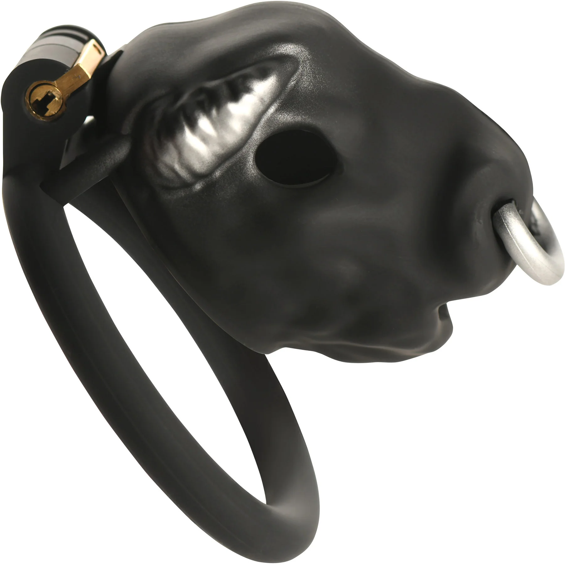 The bull's open mouth and eye holes act as a cum-thru tip and offer minor breathability for added comfort. Complete with a secure locking mechanism and 2 keys, you can decide when your partner deserves to be released. Master the art of restraint.