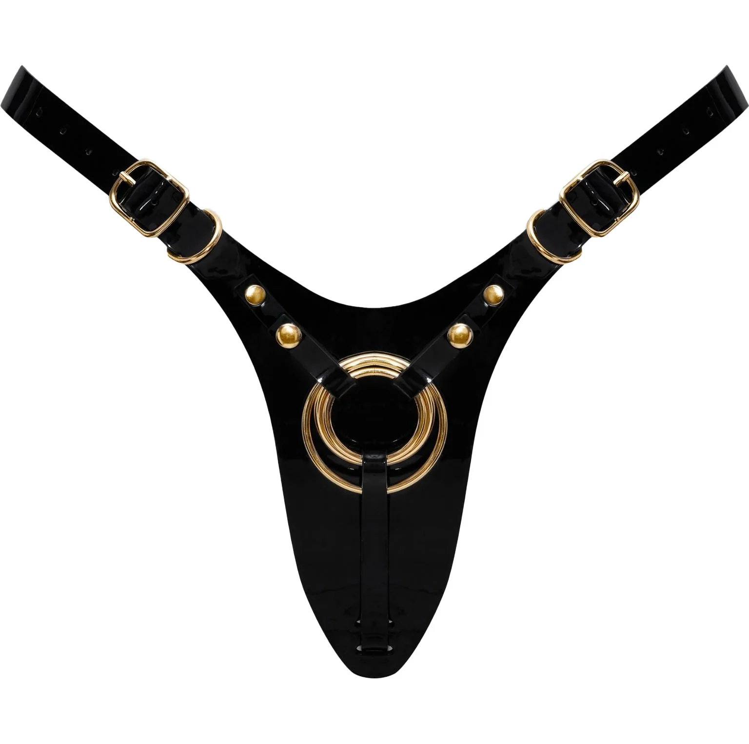 Available in sophisticated Patent Black and Patent Red, this discrete and chic harness is a must-have addition to any collection.